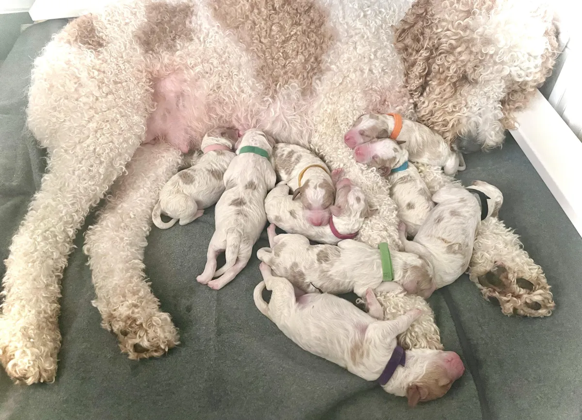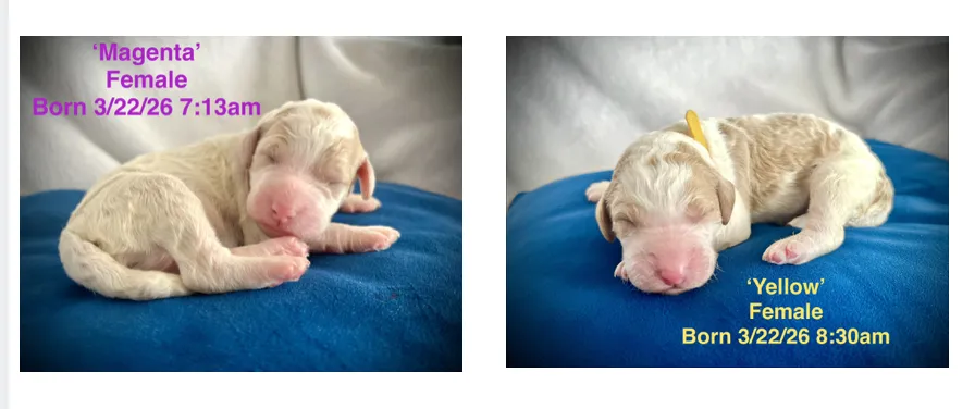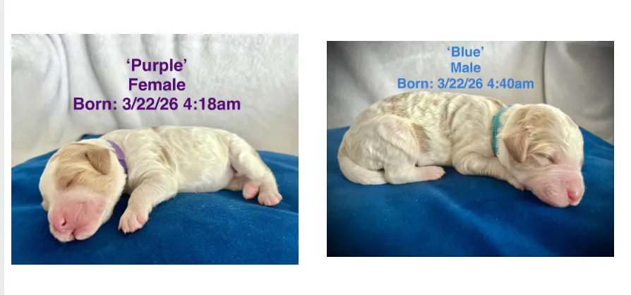 We take great pride in our intentional breeding program and hands-on puppy raising approach. Giving our puppies the very best start in life is at the core of everything we do, which is why we incorporate proven practices like Early Scent Introduction and Early Neurological Stimulation. We support each puppy’s physical, emotional, and cognitive development with patience and gentleness. Daily puppy massages further help build trust and comfort with human touch, laying the foundation for confident, loving companions.