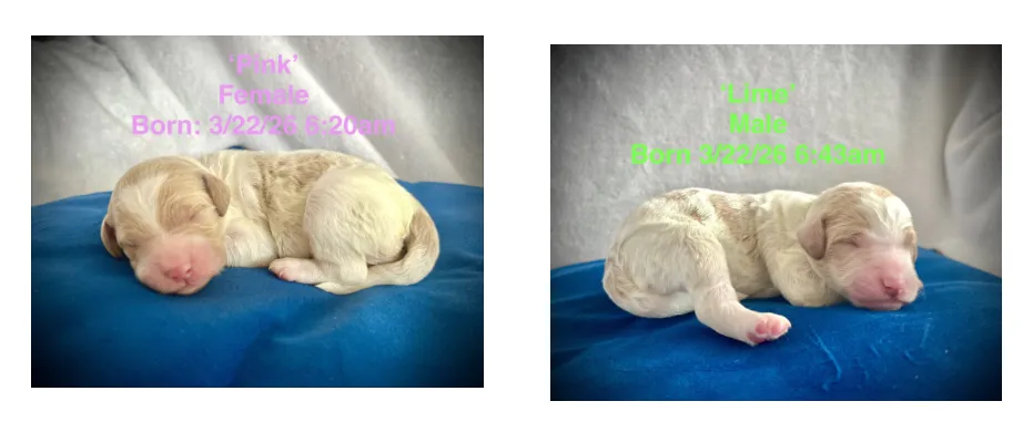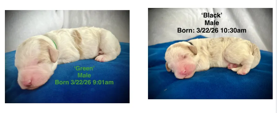 Your $500 deposit reserves your spot in line to select your favorite pup from the upcoming litter and is applied toward the price of the puppy!