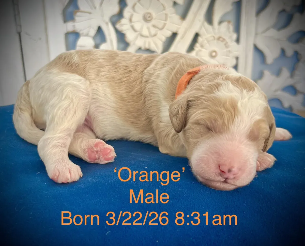 Color: Parti- Creamy White with Apricot/Tan Patches